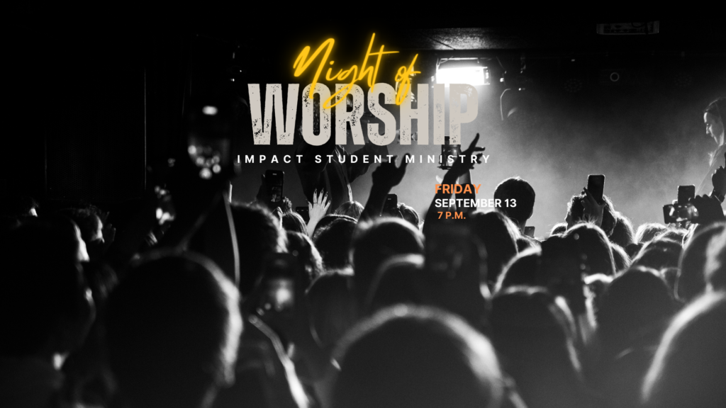 Students join us for a night of worship as we come together with food and fellowship, lifting our voices in praise to God. We will meet in the IMPACT building for this special night of worship led by our very own young adults. We are created to worship our creator, so let’s deepen our love for God and draw closer to Him in our worship and closer to each other through fellowship. Come hungry and bring your friends.