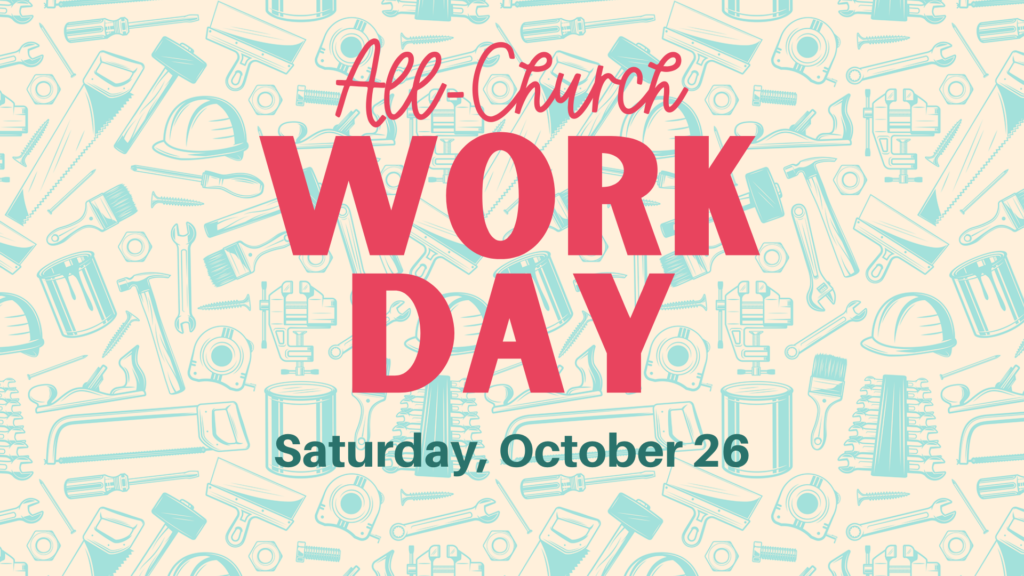 Young & spry; got muscles but nowhere to use them? Have lots of supervisory wisdom? Mark your calendar for October 26 @ 8 a.m. for a church Work Day. We have a couple of projects that need attention & we would love your help.