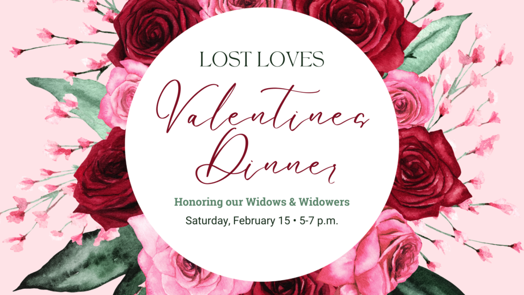 Widows and widowers, we’d like to honor you this Valentine’s holiday. You’re invited to join us for a special Valentine’s Dinner this Saturday, February 10, from 5 – 6:30 p.m. in the KiX building. We’ll celebrate God’s love together over a delicious Italian dinner. Invitations have been sent via mail and email.