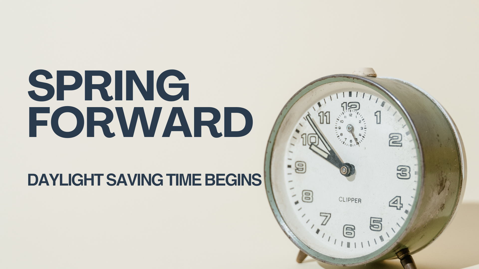 Daylight Saving Time begins. Set your clocks forward 1 hour.